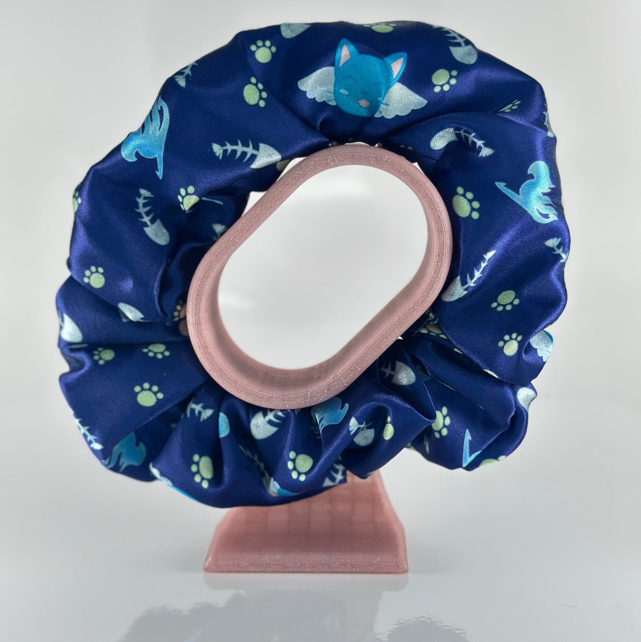 Blue satin hair scrunchy featuring Fairy Tail’s blue cat Happy! Designed by me and handmade. Not all scrunchies are the same and patterns may vary.